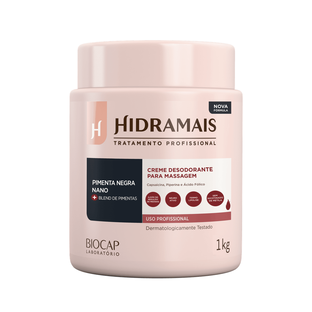 O que é ?É um Creme Desodorante para Massagem de uso profissional, especificamente formulado para tratamentos corporais com foco em ação redutora, ativadora e de firmeza. Ele faz parte da linha Hidramais Tratamento Profissional e possui uma tecnologia nanoencapsulada para potencializar a entrega dos ativos.